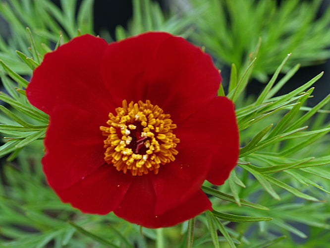Deep red flowers 9cm.wide Apr-May, lovely ferny divided foliage, 45cm. Collected Okhotnyche Plateau, behind Ai-Petri, Ukraine, 1100 m.altitude.