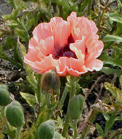 Plentiful small candy-pink poppies later- Jun, short 50cm.