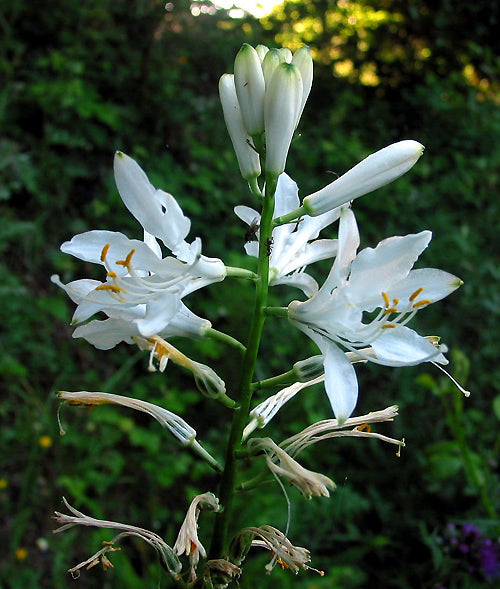Spikes of white trumpet-shaped flowers May-Jun, 65cm. Easy. Mountains of Central Portugal and northern Spain.