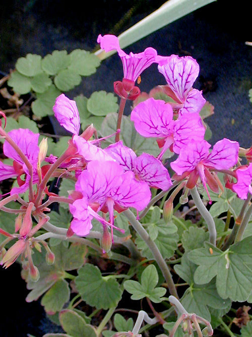 Delicate heads of large pink flowers over a long period Jun-Aug, greyish leaves, 25cm. Hardy pelargonium from Akseki, Turkey.