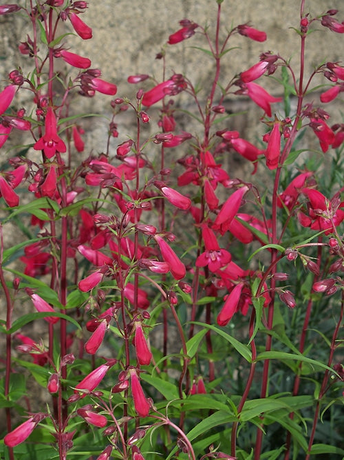 Garnet-coloured trumpets Jun-Nov, reliably hardy, narrow-leaved 75cm. Any soil, Sun or light shade.