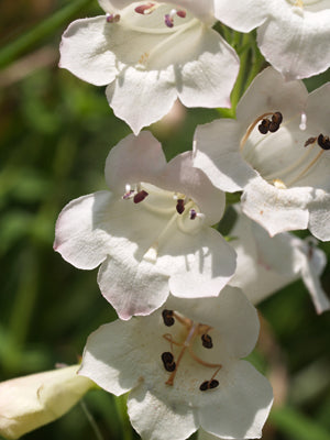 Clusters of large white trumpet flowers for a long season May-Oct, 65cm. Easy in all but dry shade. Syn. P.White Bedder.