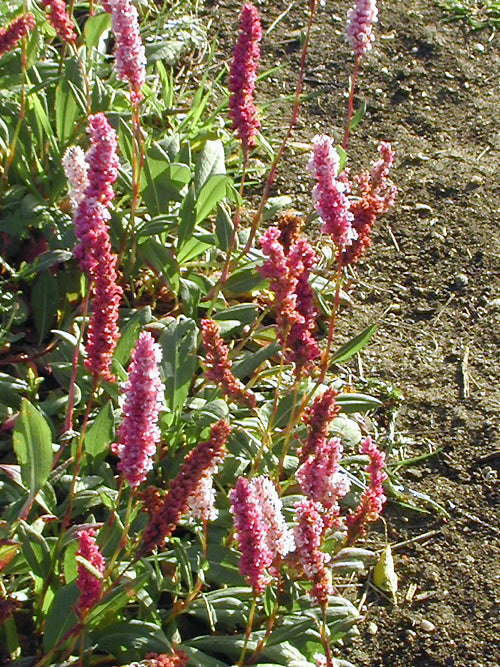 Long spikes of salmon-flushed deep pink flowers start pale pink (they have their best colour late in year) Jun-Nov, 20cm. Easy. Good dried flower. The plant needs regular renewal or it gets scruffy.