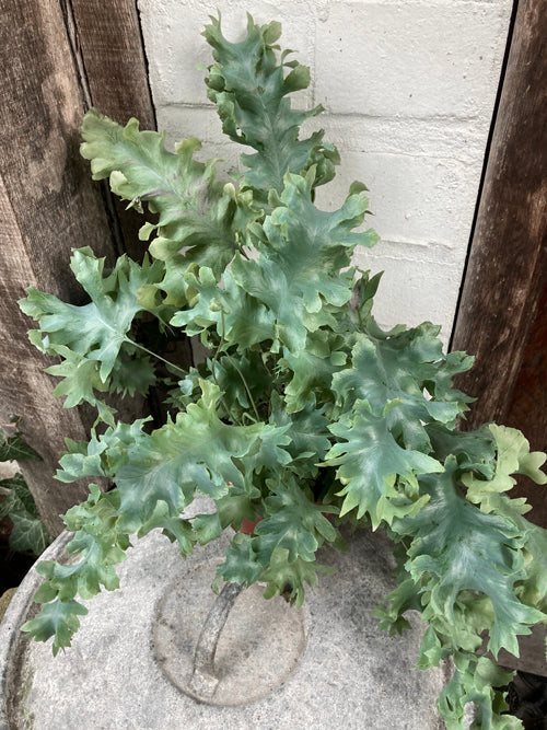 Lovely curly blue-green evergreen fern, shorter than others 30cm.