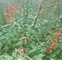Spires of coral flowers with primrose throats Jun-Oct, 1m. Easy. Suffers from insect attack that prevents flowering.