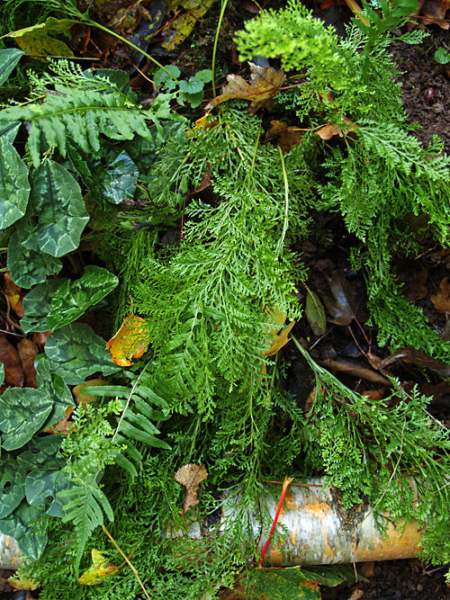Beautiful old form. 3-4 pinnatifid fronds with twisted pinnules all the year looking messy only in May and June (when no-one notices), 12cm. Like parsley crisped filmy fern.