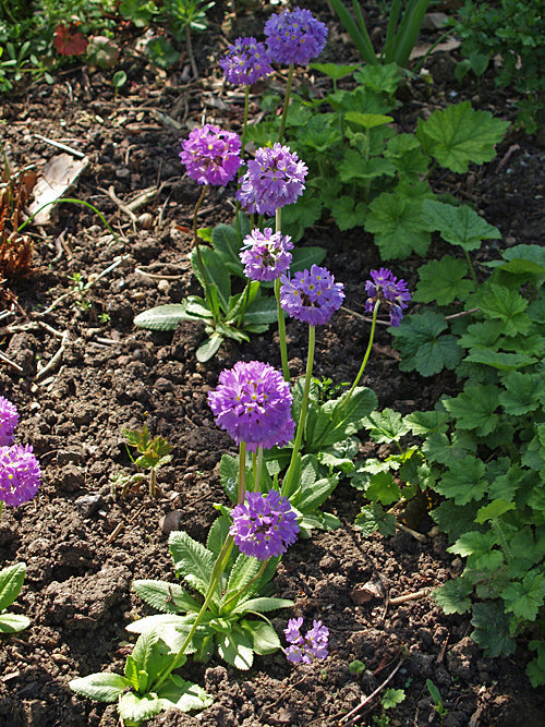 Ball-shaped heads of lilac, red or white flowers Mar-May, 30cm. Easy in good soil and sun or part shade.