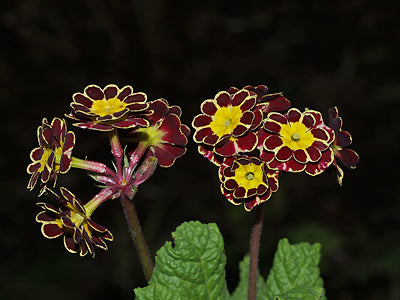 Small mahogany flowers with gold lacing one flower inside another giving almost twice the effect, Feb-Jun, 15cm. Easy.