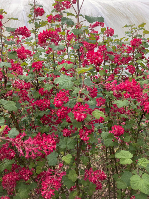 Deep red flowers in tassles held outwards Mar-Apr, 1.5m