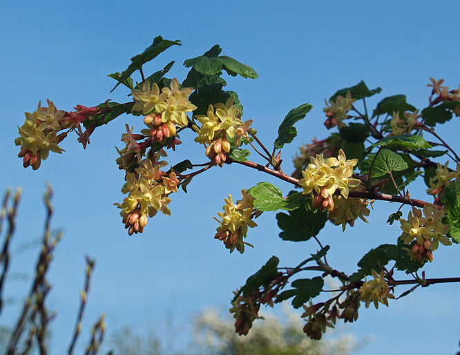 Deciduous shrub, tassles of palest green-flushed apricot flowers, small purple-black fruits, 3m. Chile. No thorns.
