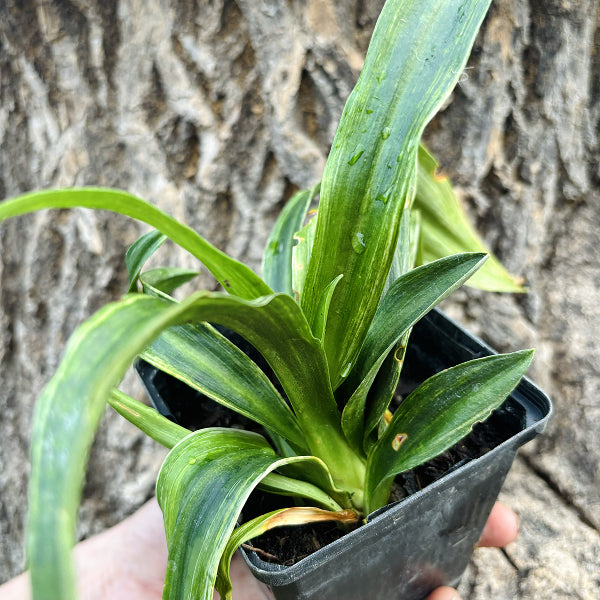 A compact, evergreen perennial prized for its refined beauty and low maintenance nature. This vigorous upright dwarf form features striking, creamy white variegated leaves that mature to a soft creamy yellow, providing a luminous touch to garden beds, borders, and containers.
