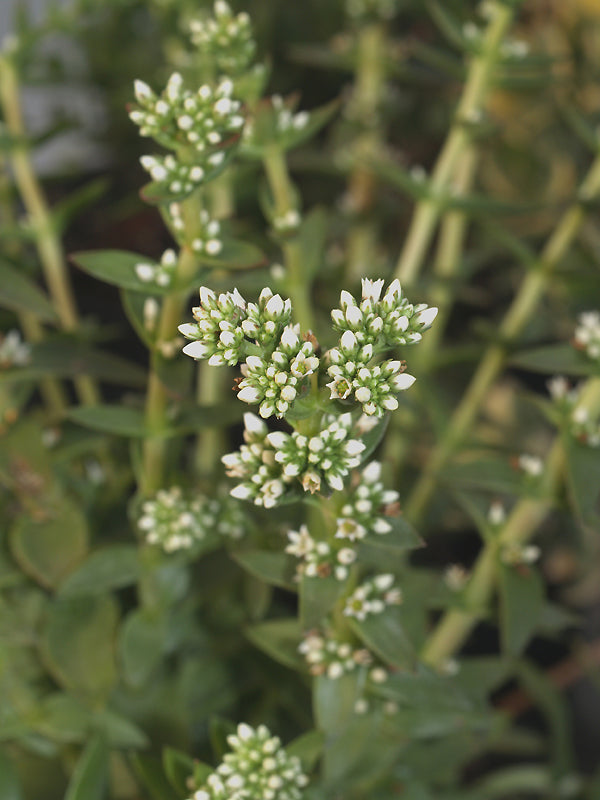 Makes bushy succulent growth and has small white flowers in clusters Oct-Dec, 25cm. Mexico. Hardy.