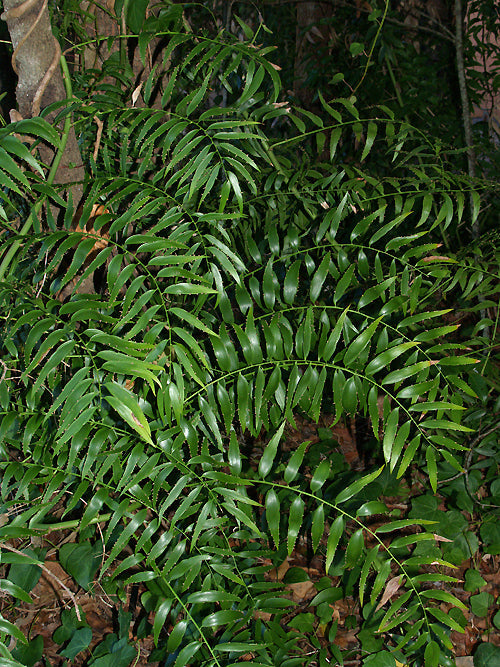 Evergreen ruscus-like plant with compound 'leaves' and red berries. Macaronesia. Synonym Danae androgyna.
