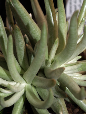 Hardy silver-green succulent from high altitude, starry silvery-yellow flowers Jul-Aug, 15cm. Sunny. SA.