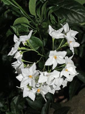 Clusters of white flowers Jun-Nov, climbing to 4m. Sheltered wall, any soil.