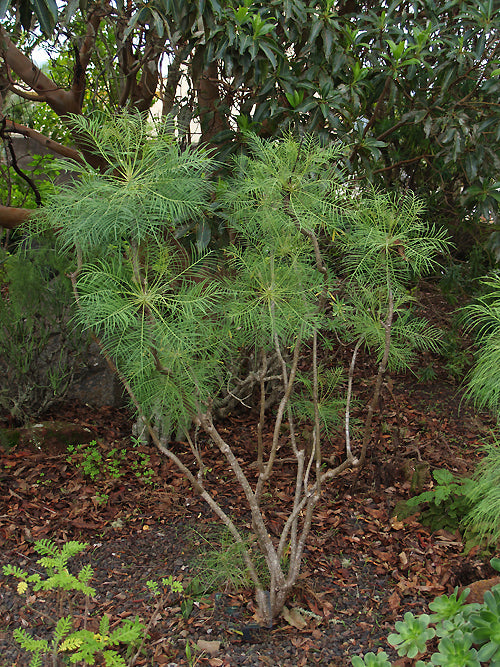 Only described in 1992. Elegant hair-thin pinnate foliage in tufts from woody stems. Endangered endemic from La Gomera, Canaries. Scruffy weedy yellow flowers.