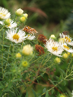 White (grey-white) flowers on a pale plant Aug-Sep, no mildew, 1-2m. Easy. In common with other white flowered plants, the flowers die badly. Synonym Aster novae-angliae 'Herbstschnee'.