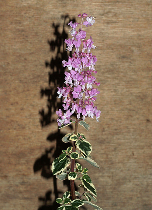 Neat cream-edged foliage, terminal racemes of bright purple flowers from reddish stems Aug-Dec-Apr, neat 75cm. Easy tender perennial. Africa. Synonym Hemizygea 'Candy Kisses'.