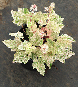 Cream-speckled pinkish maple-shaped foliage, pretty stems of starry pink flowers Apr-Jul and later, 25cm. Lovely.