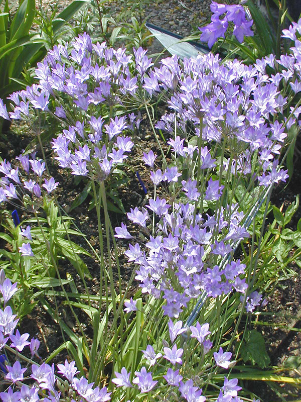 Lucent mauve flowers shading to purple at tips May-Jul, 55cm. Lovely. Often mistaken for an early agapanthus.