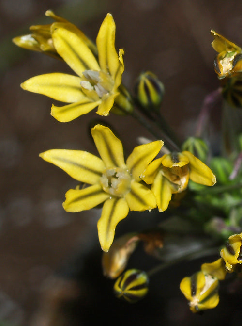 Butter yellow flowers with a purple midstripe in 8-12 flowered umbels. Seed collected 9100 feet altitude, Little round top ridge, N.Sierra Nevada Range, Alpine Co, CA.
