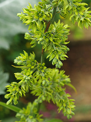 Tall drooping heads of green flowers Jun-Aug, pointed pleated foliage, 2m. See "The Hardy Plant", Vol29, no.1, 2008. Vigorous.