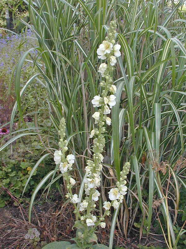 Large cream flowers over grey leaves May-Sep, 1.5-2m. Lovely.
